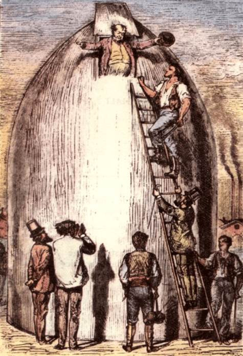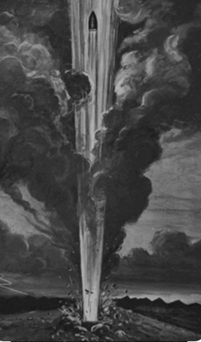 Sono molto orgoglioso di dire che il mio bisnonno è stato uno dei primi viaggiatori lunari. Potete vederlo nella foto qui sotto mentre dice addio ai suoi sei figli. Mio nonno è all’estrema sinistra. Dopo due decolli fallitiè stato sparato nello spazio con un enorme botto. Potete vedere la navicella spaziale in cima alla colonna di fuoco sulla seconda foto qui sotto. Scriviamo il 3 settembre 1837. Cosa è successo? Non sappiamo. Probabilmente un errore di calcolo ha messo la sua navicella spaziale su una trajettoria nella Via Lattea.