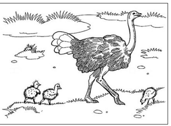 Una volta nella savana è successo che una leonessa ha dato la vita a qualche leoncino allo stesso momento che le uova di uno struzzo si aprivano. Purtroppo, un poco dopo tutti i leoncini si presero la scabbia. I disgraziati furono respinti dalla leonessa. Quella decise di cambiare i leoncini scabiosi con i pulcini sani dello struzzo. Naturalmente, lo struzzo non era felice di questo cambio ma ebbe paura della leonessa e non osò contraddirla.